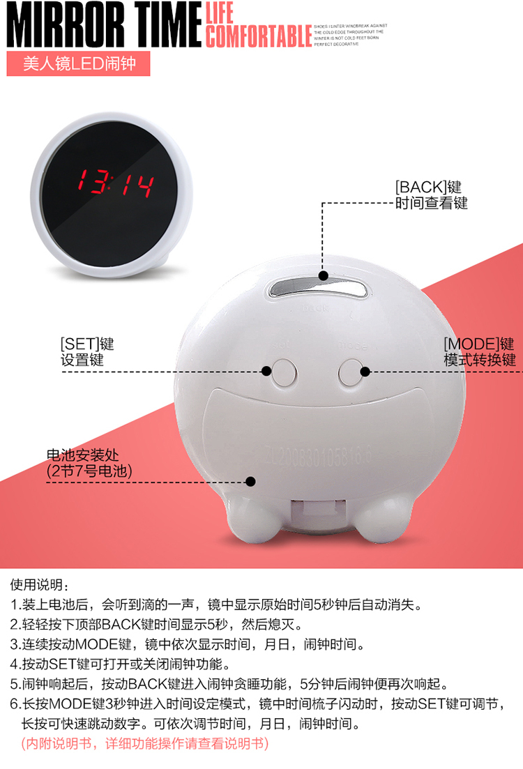 商品名称:床头闹钟(颜色随机)床头闹钟